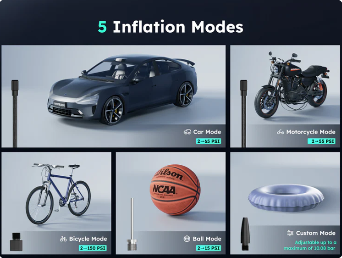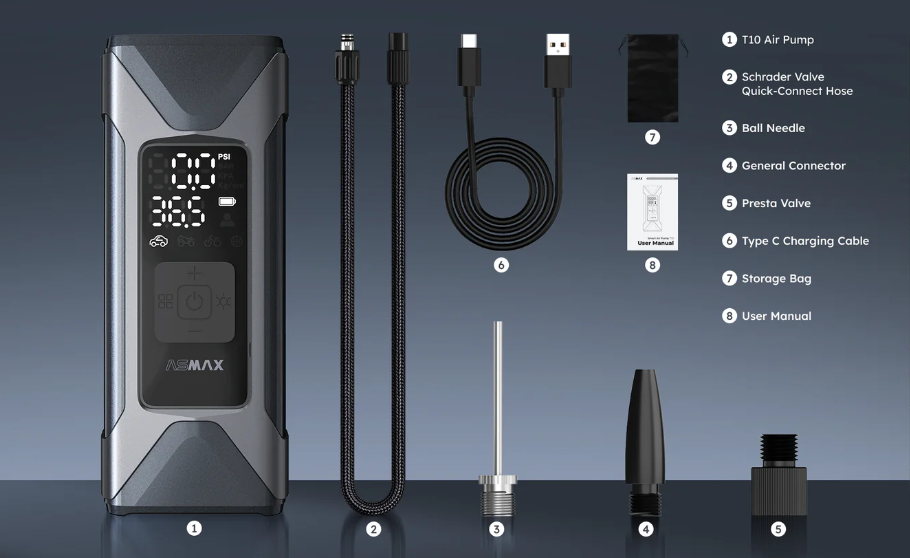 Nenechajte sa oklamať veľkosťou – T10 poskytuje poriadny výkon s tlakom až 160 PSI, čo vám zabezpečí rýchle a spoľahlivé nafukovanie motocyklov, áut, bicyklov a ďalších zariadení. Vďaka štyrom režimom nafukovania a zabudovanému automatickému zastaveniu zvládnete akúkoľvek situáciu s ľahkosťou – bez nutnosti hádať.